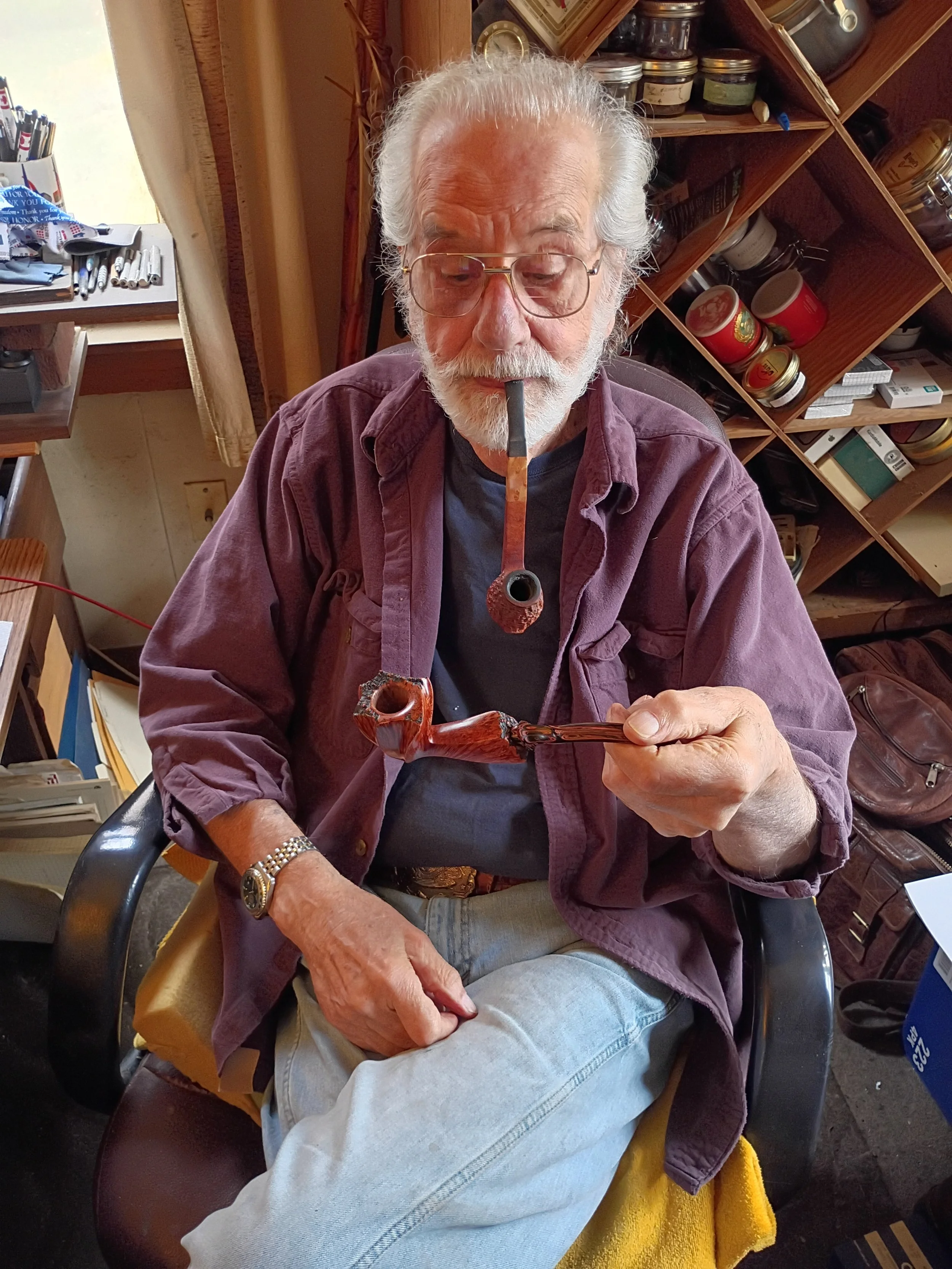 Select pipes are oil-cured, a process I learned directly from Lee von Erck. This traditional method—also used by Dunhill in the 1940s—accelerates the drying of the wood and permanently alters its chemical properties.
