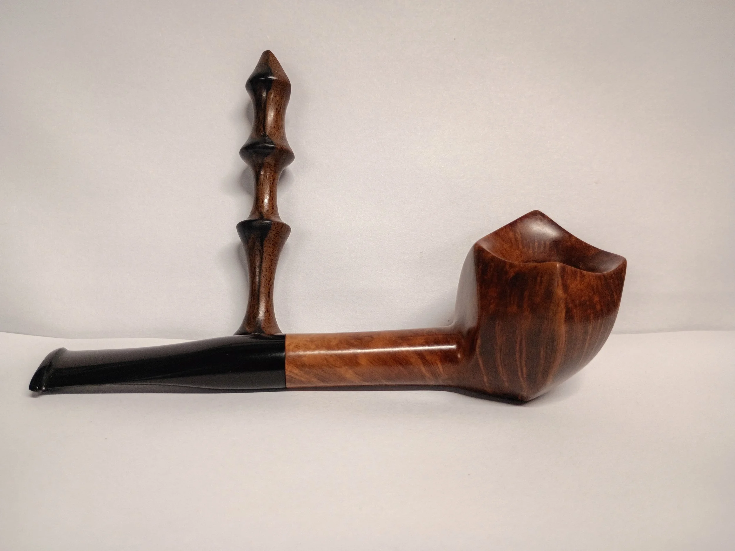 Image 1 of 2 Image 2 of 2 Pipe #25-4 $150.00 This pipe is oil cured and has a vulcanite stem. The tamper is included with the purchase of this pipe. It is a sitter. Add To Cart Added! This pipe is oil cured and has a vulcanite stem. The tamper is included with the purchase of this pipe. It is a sitter.